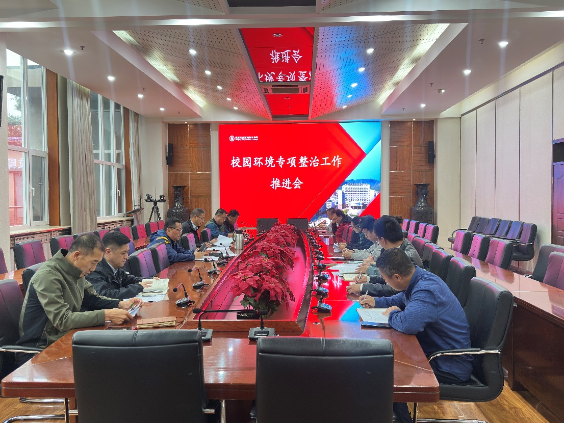 为全面推进校园环境综合治理工作,确保各项任务责任到人、落实到位,2025年10月14日下午,校园环境专项整治工作推进会在匠心楼第四会议室召开。会议由后勤基建处牵头,安稳处、学生工作处、团委、各院系学生工作负责人、相关职能处室人员参加会议,校党委常委、副院长高世吉出席会议并提出相关要求。
