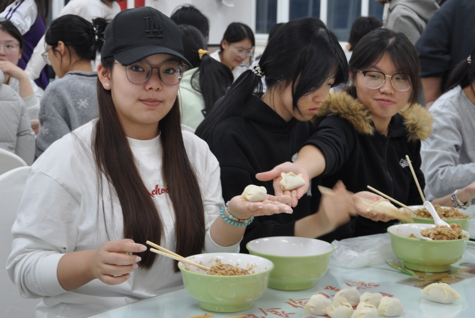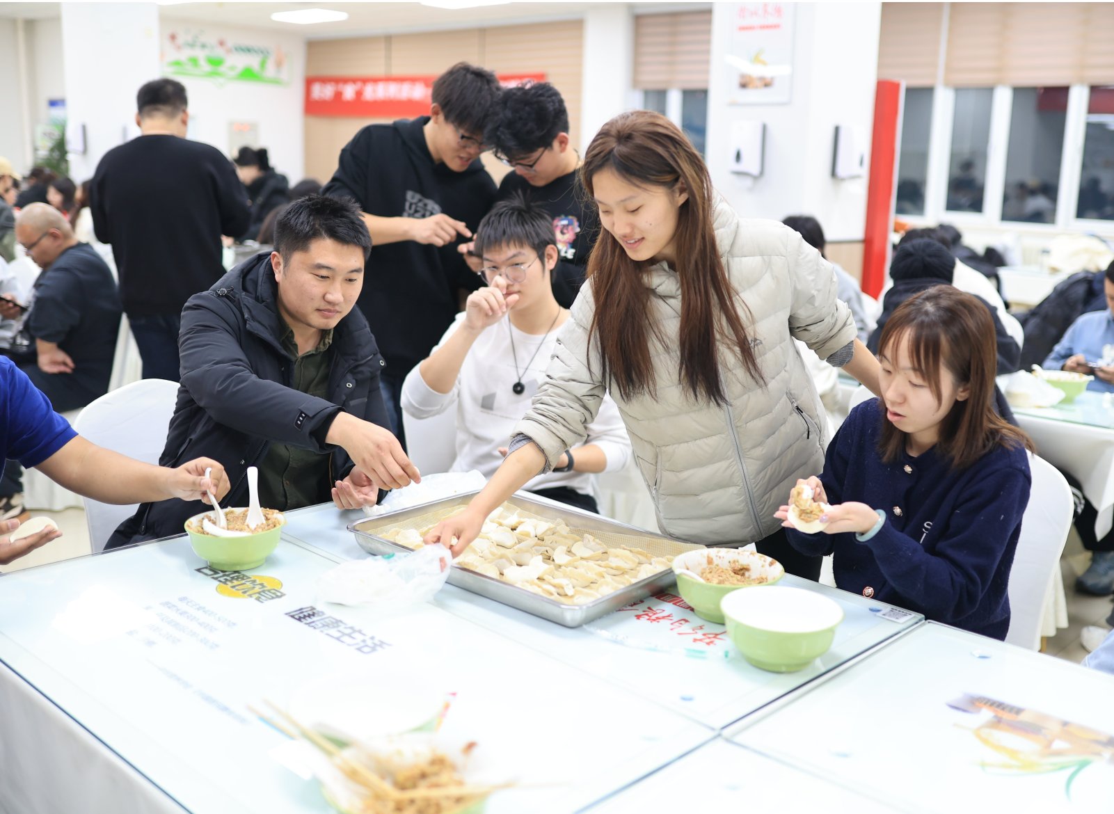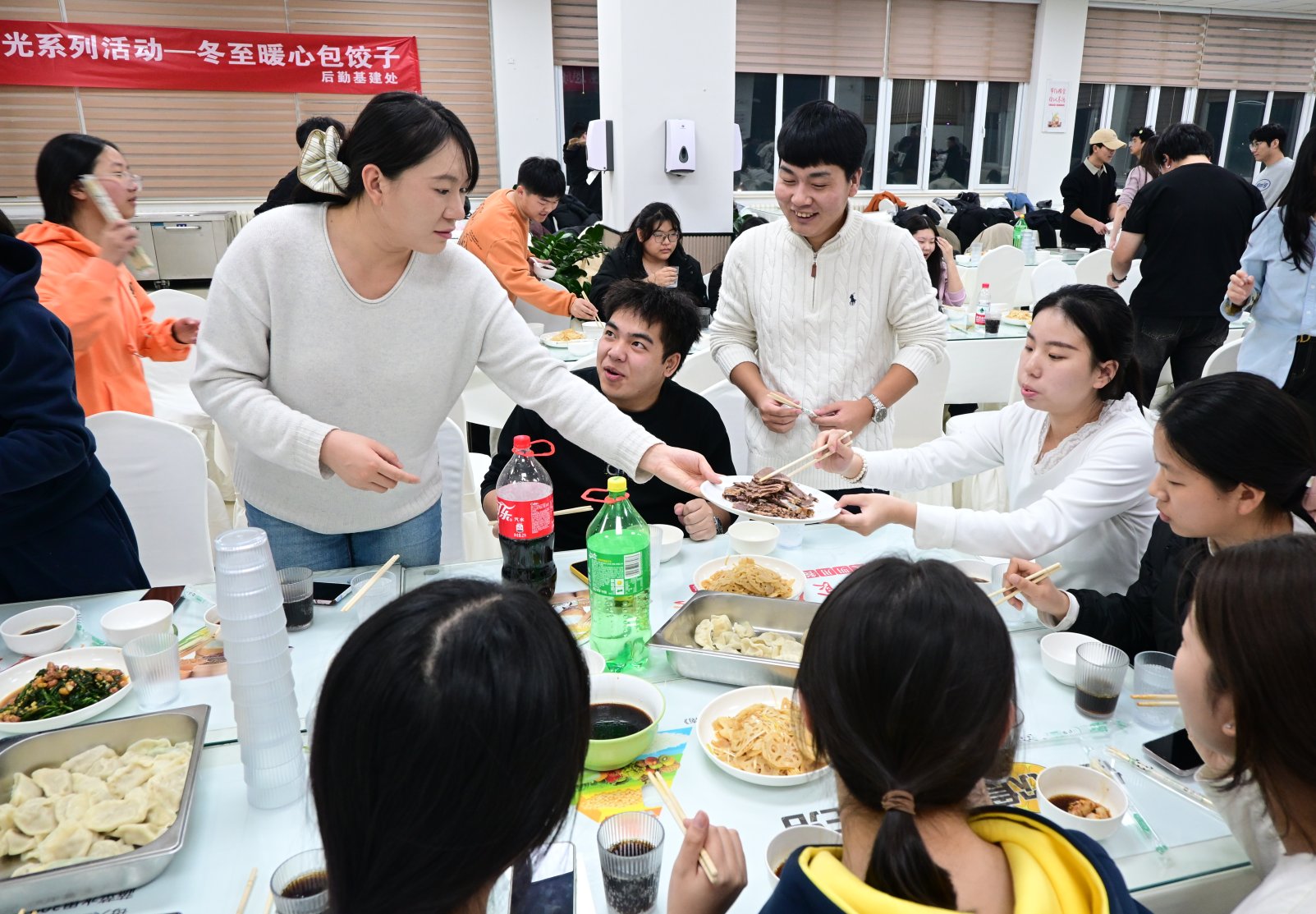 冬至日,寒意渐浓,校园内食堂里却暖意融融。为弘扬中华传统文化,增进师生情谊,后勤基建处联合学生工作处筑梦社贫困学生与各学院师生代表共同举办第六届美好“食”光冬至暖心包饺子活动,数百名师生齐聚食堂,共同包饺子迎接冬至佳节。
